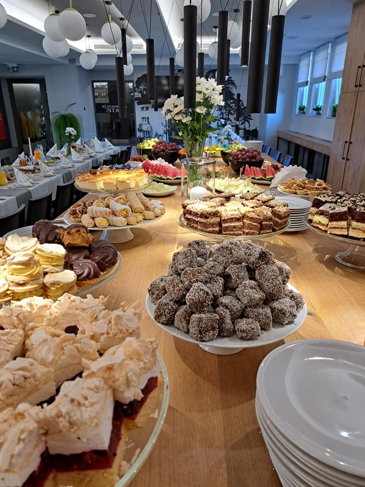 Dysponujemy salą konsumpcyjną na 80 miejsc z możliwością zwiększenia do 250.
